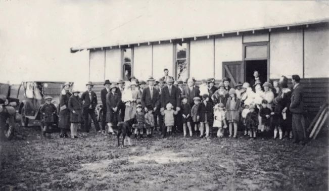 Some years ago, the progressive element amongst the settlers conceived the idea of erecting a structure which would provide school facilities for their children, whilst lending itself to such purposes as a place for public worship, meetings, and for the general enjoyment of the district. The Education Department was approached. but refused to entertain the proposal on the plea that insufficient children of school age were available.